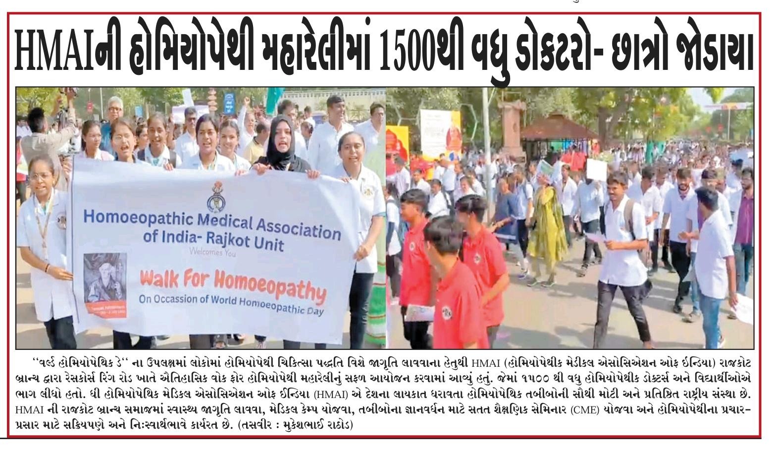 1500 doctors and student's Participation in Homeopathy Awareness Walk by HMAI Rajkot unit